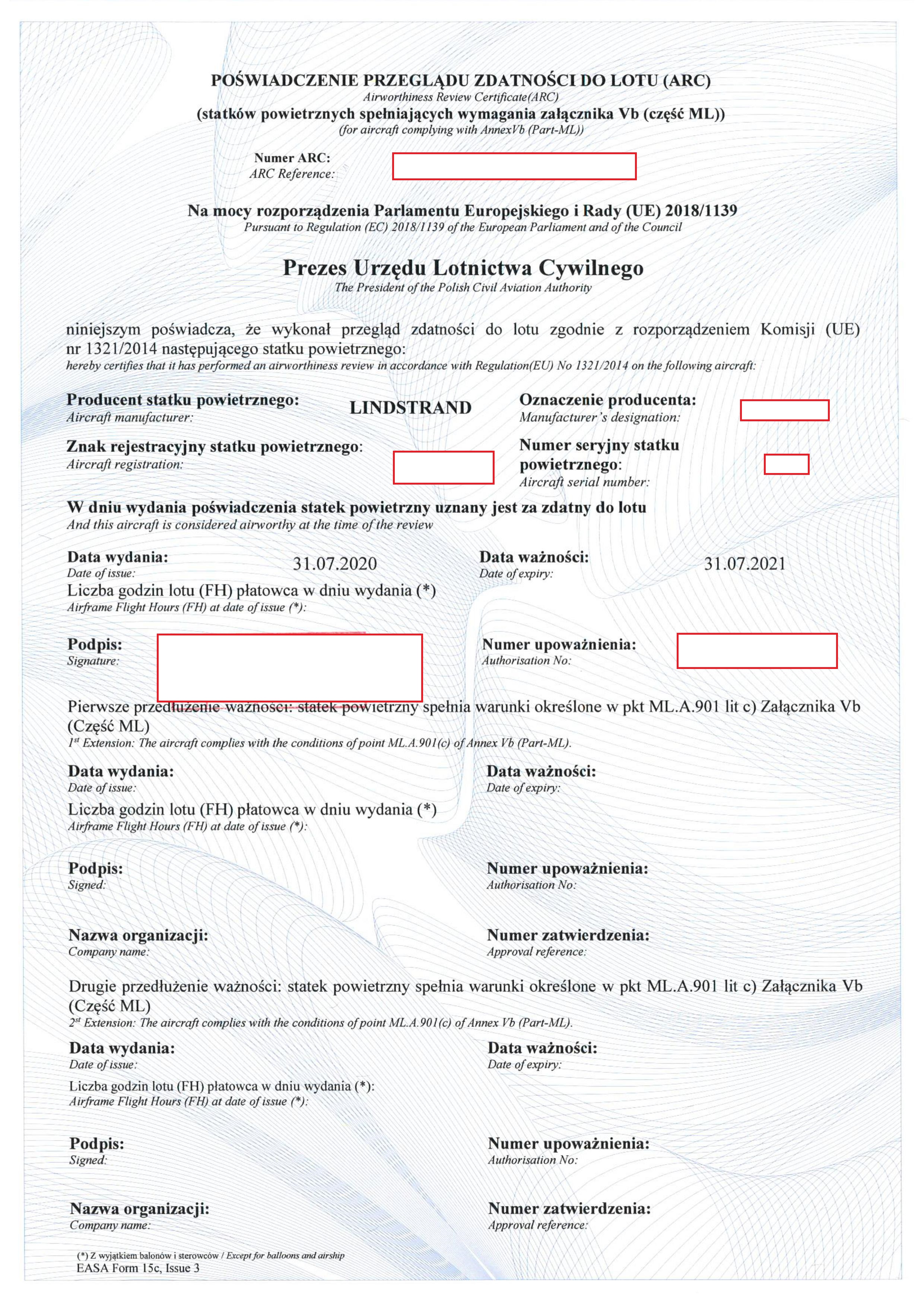 - Poświadczenie przeglądu zdatności do lotu pobierz plik