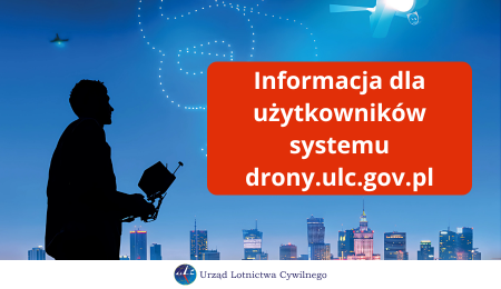 Przypominamy, że w związku z uruchomieniem w kwietniu 2024 r. nowej platformy drony.gov.pl dotychczasowy system nie jest już aktualizowany i 31 grudnia 2024 r. zostanie wyłączony.Od 1 stycznia 2025 r. nie będzie możliwości zalogowania się na „starą” stronę drony.ulc.gov.pl.Zachęcamy do zakładania kont w nowym systemie drony.gov.pl i przenoszenia swoich danych.