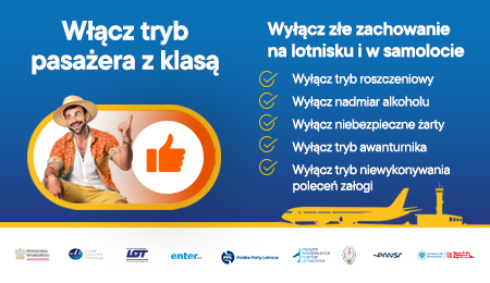 Urząd Lotnictwa Cywilnego, we współpracy z Ministerstwem Infrastruktury, Polską Agencją Żeglugi Powietrznej, Związkiem Regionalnych Portów Lotniczych, Polskimi Liniami Lotniczymi LOT, Enter Air, Polskimi Portami Lotniczymi S.A., Strażą Graniczną oraz Uniwersytetem Wrocławskim, rozpoczyna ogólnopolską kampanię informacyjno-edukacyjną poświęconą problemowi niezdyscyplinowanych pasażerów lotniczych.