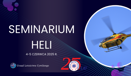 Urząd Lotnictwa Cywilnego we współpracy z Lotniczym Pogotowiem Ratunkowym zaprosza na Seminarium HELI – wydarzenie dedykowane działalności z wykorzystaniem śmigłowców, które jest planowane w dniach 4-5 czerwca 2025 r. w siedzibie Lotniczego Pogotowia Ratunkowego przy ul. Księżycowej 5 w Warszawie. Udział w wydarzeniu możliwy będzie zarówno w formie stacjonarnej, jak i online.