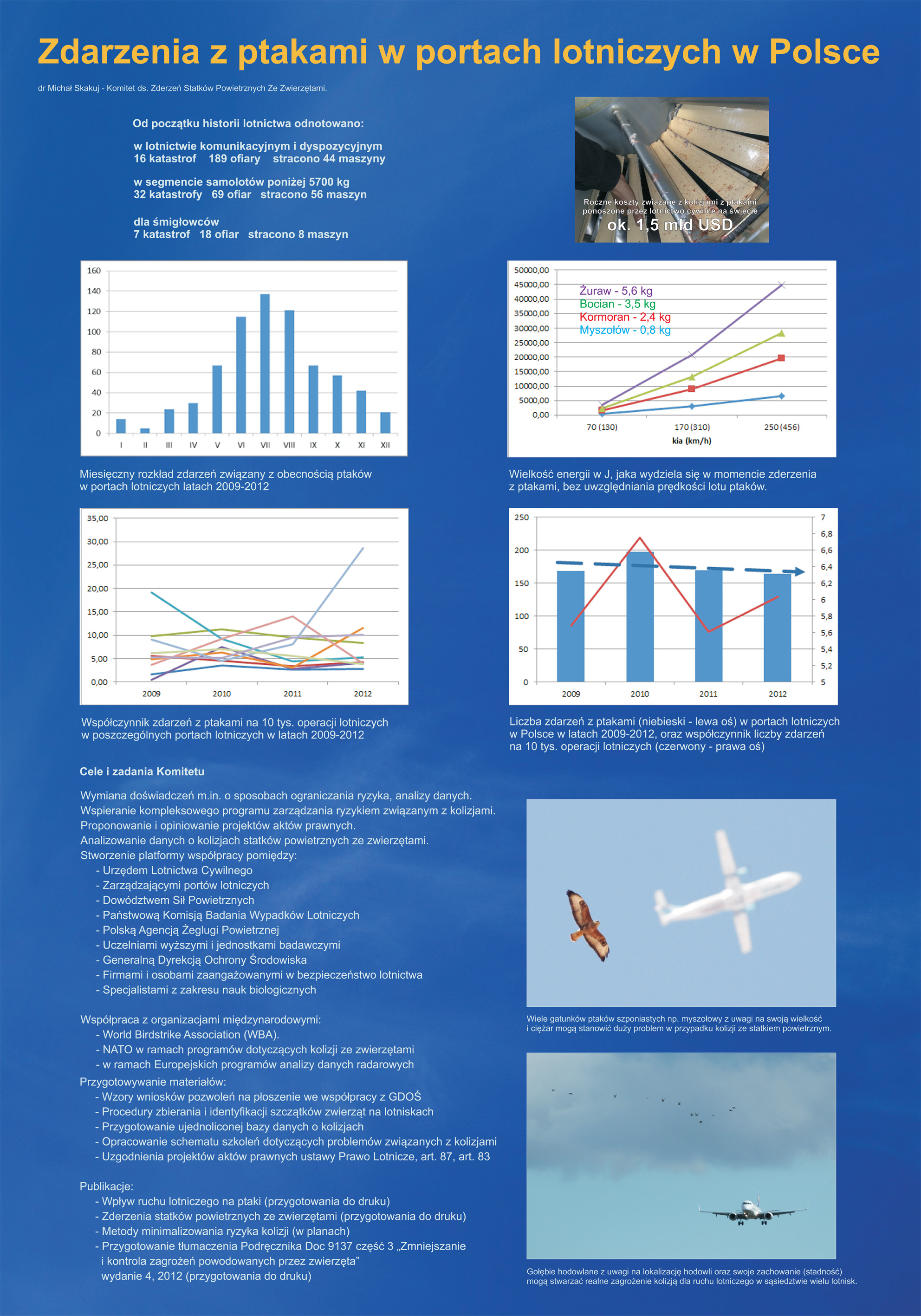 - omówienia statystyki zderzeń statków powietrznych ze zwierzętami w Polsce w latach 2010-2013;
