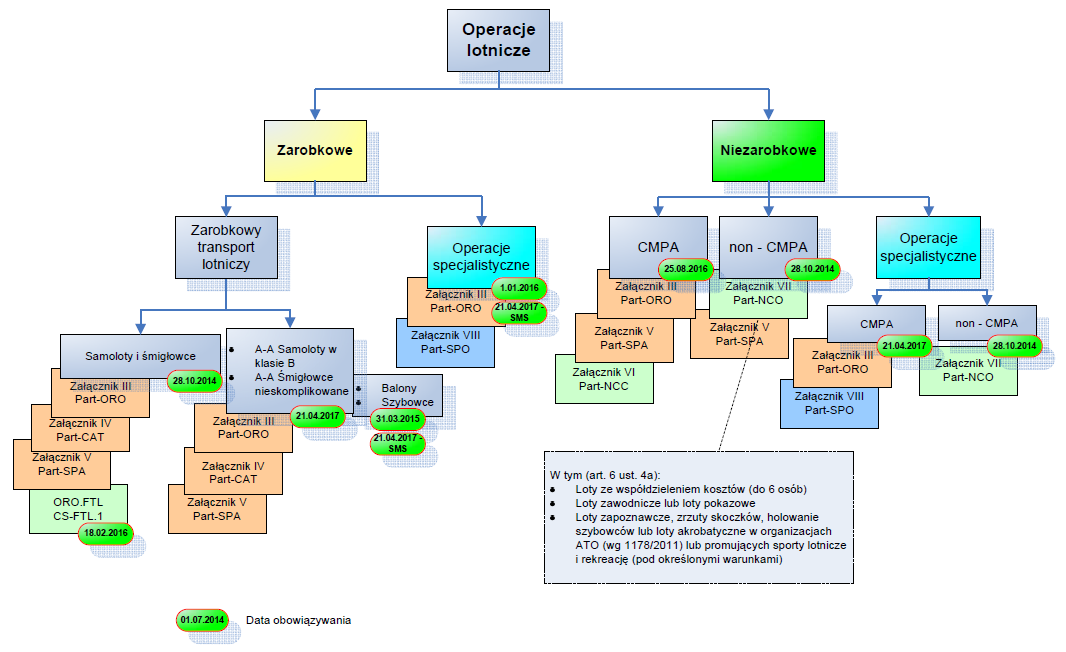 Dyrektor Wykonawczy EASA Decyzją nr 2016/022/R z dnia 6 października 2016 wprowadził do stosowania z dniem 1 lipca 2018 r. AMC i GM do załączników: Definicje, Part-ARO, Part-ORO, Part-CAT, Part-SPA, Part-NCC, Part-NCO i Part-SPO rozporządzenia (UE) nr 965/2012.