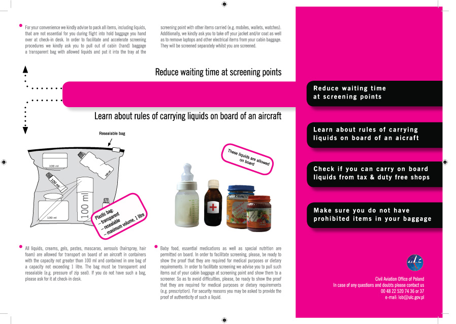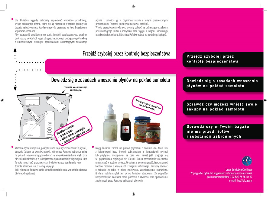 Ulotki oraz plakaty informacyjne są również dostępne we wszystkich portach lotniczych w Polsce oraz w Punkcie Obsługi Klienta ULC.
