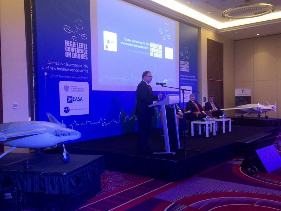 Drony, czyli bezzałogowe statki powietrzne, stają się coraz bardziej popularnym narzędziem pracy, zarówno dla wojska i policji, jak też dla branży cywilnej, np. placówek pocztowych czy medycznych. Dzisiaj, w Warszawie rozpocznie się dwudniowa Konferencja, podczas której paneliści ocenią w jaki sposób utworzyć rynek usług dronów w UE do 2019 roku. W konferencji wezmą udział Andrzej Adamczyk, Minister Infrastruktury i Budownictwa; Violeta Bulc, Europejska Komisarz do spraw Mobilności i Transportu; Patrick Ky, Dyrektor Wykonawczy, Europejskiej Agencji Bezpieczeństwa Lotniczego (EASA) oraz Piotr Samson, Prezes Urzędu Lotnictwa Cywilnego.