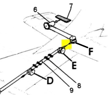 Porównanie szczegółów przebiegu linek na rysunku 9-1 zamieszczonym w IOT D2006-4-13, w stosunku do Instrukcji Obsługi Technicznej D20068-3-13 , Cessna 182 (1977-1986), a więc modelu nowszego, wykazuje różnicę w przebiegu linek między zespołami rolek E i F. Na poniższych rysunkach kluczowy odcinek zaznaczony na żółto. Po poprowadzeniu linek zgodnie z rysunkiem 9-1 zamieszczonym w IOT D2068-3-13, stwierdzono poprawność działania klapki trymera w zakresie kierunków wychylenia.