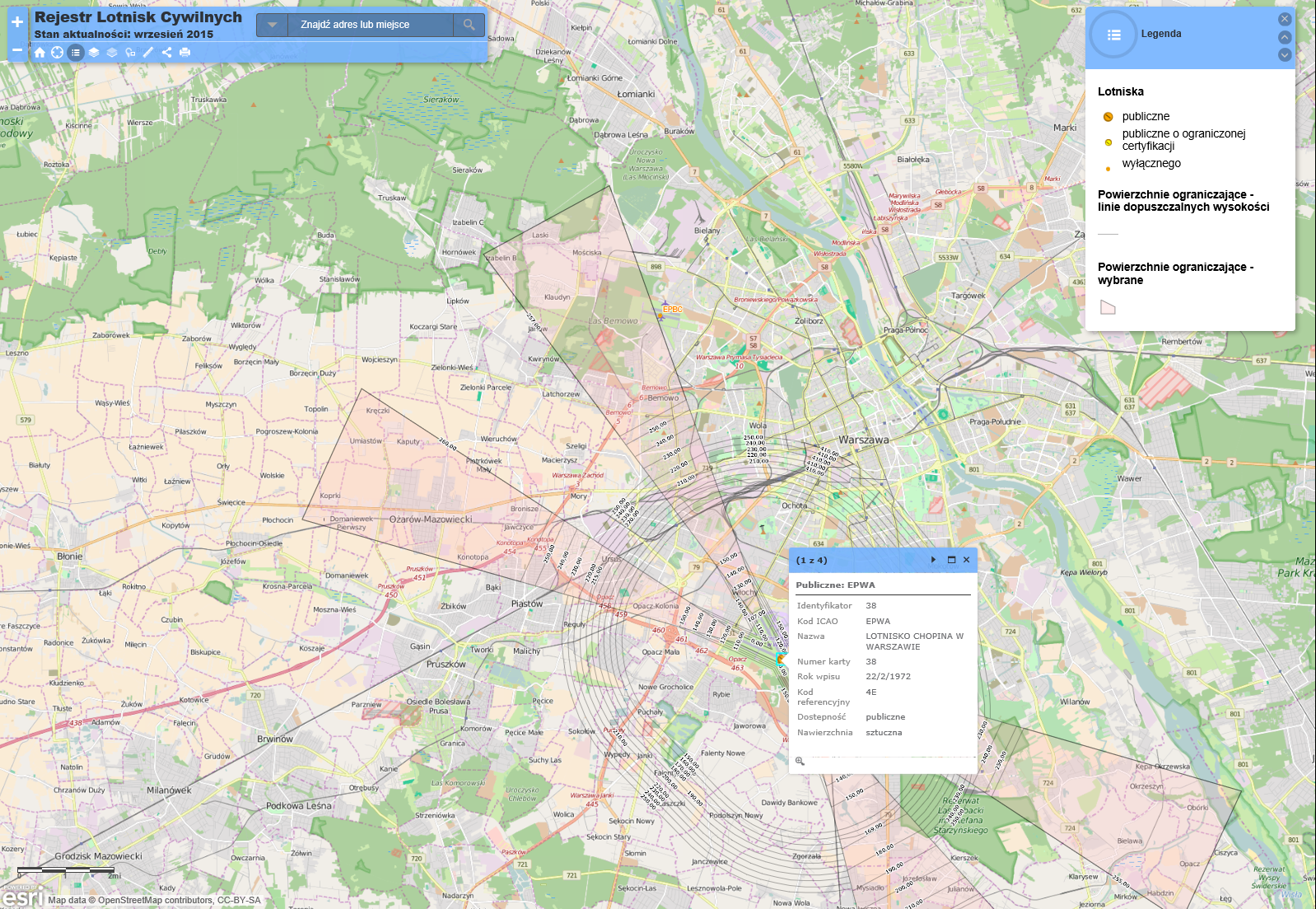 Serwis informacyjny przedstawiający aktualny wykaz lotnisk wpisanych do Rejestru Lotnisk Cywilnych wraz z kilkoma podstawowymi atrybutami oraz powierzchniami ograniczającymi wysokość zabudowy.